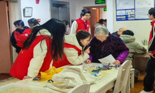 除包饺子外,志愿者们还策划组织了多项互动活动:陪老人打纸牌、剪纸、歌唱、舞蹈等,经典歌曲《最炫民族风》演唱和小品《庸医》表演,尤其受到老人们的欢迎。表演过程中,志愿者积极与老人互动,现场掌声不断,气氛温馨融洽。针对行动不便的老人,志愿者专程将剪纸“福”字送至床前,让每位老人都能感受到节日的温暖。一位老人激动地表示:“你们来了,院里就热闹了,就像自己的孙子孙女回来一样。”